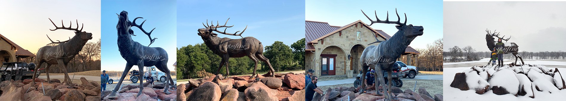 We are very happy. Today, we received some beautiful pictures from our American customer. Our American customer bought a large elk Statue from YouFine Art Sculpture, and she was happy to share these pictures with our workers. The customer sent us a picture of the sculpture reaching its destination and a picture of the final bronze elk statue installation.