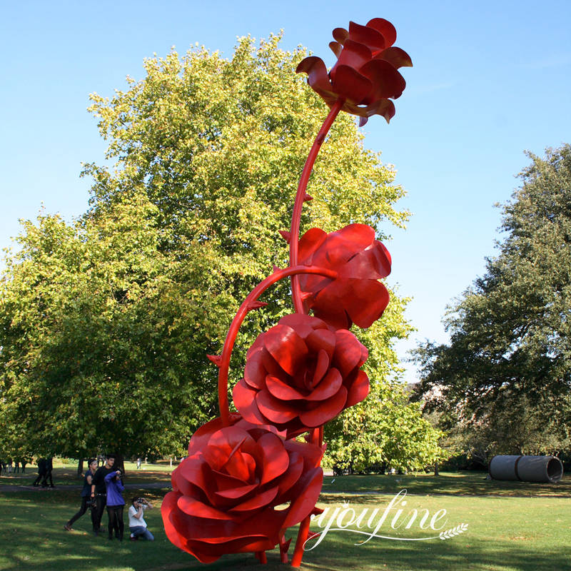 This set of large red rose sculptures comes in two popular sizes, 3 meters or 5 meters high, suitable for large gardens. Especially suitable for homeowners who want to create a highlight or hold an event.