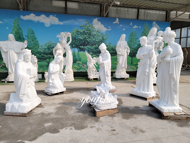 At our sculpture factory, we have extensive experience crafting high-quality religious sculptures, including Nativity scenes. Our skilled artisans use premium materials, such as resin and marble, to create detailed and durable pieces that bring the Nativity story to life. Whether you’re looking for a small set for your front yard or a large display for your church, we can tailor the design to meet your needs.