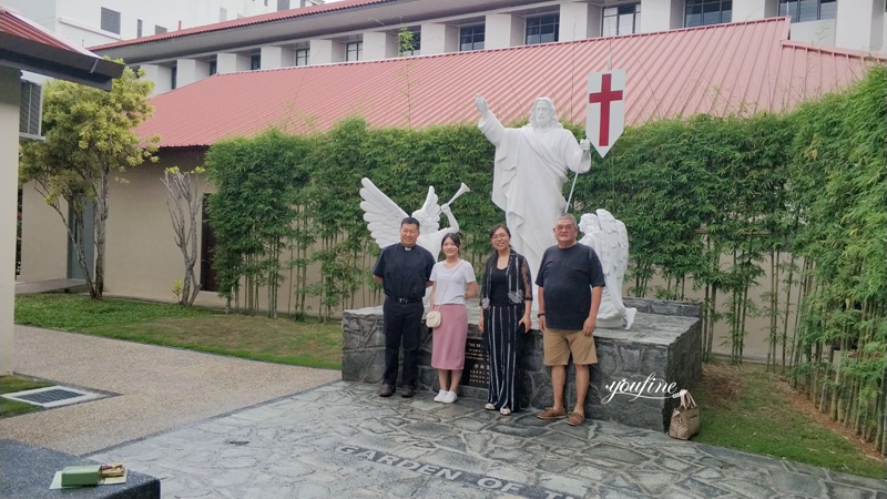 Following the project, YouFine’s factory director, Dora, visited St. Joseph’s Church in Singapore at the client’s invitation. She inspected the installed sculptures and was warmly hosted by the church team, who introduced her to local delicacies, including durian.