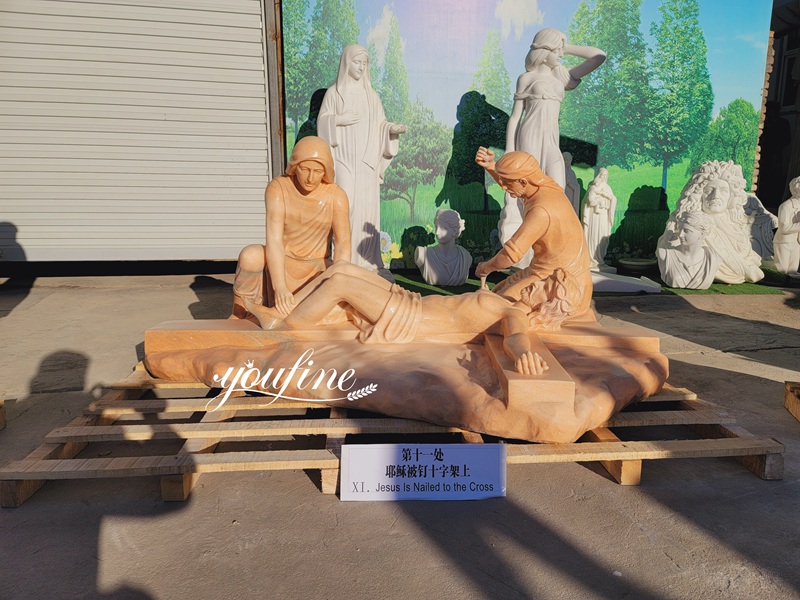 Life Size Jesus Is Nailed to the Cross Marble Statue MCH-142