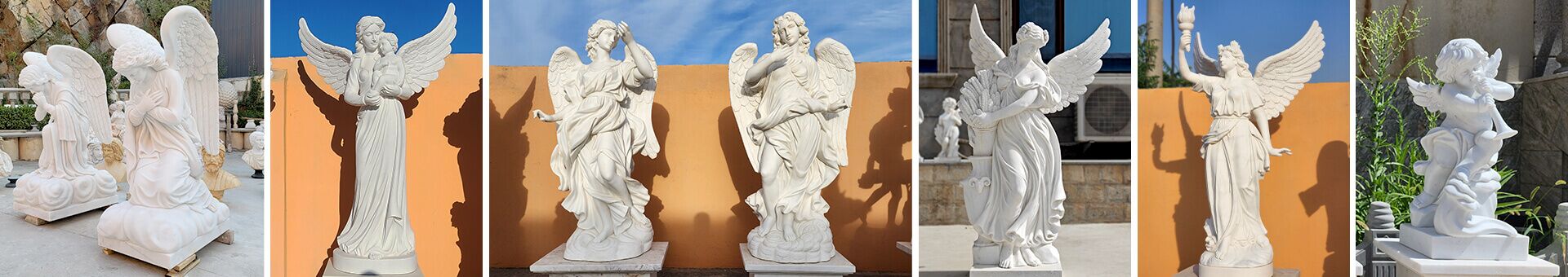 Hand Carved Marble Mother Angel Holding Baby Statue MOKK-528