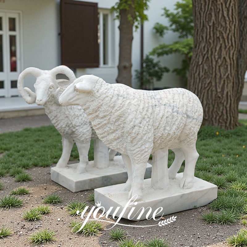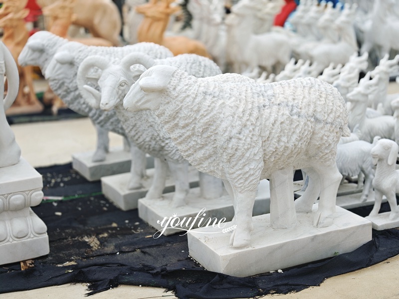 Outdoor Marble Sheep Statue for Farm MAN-040