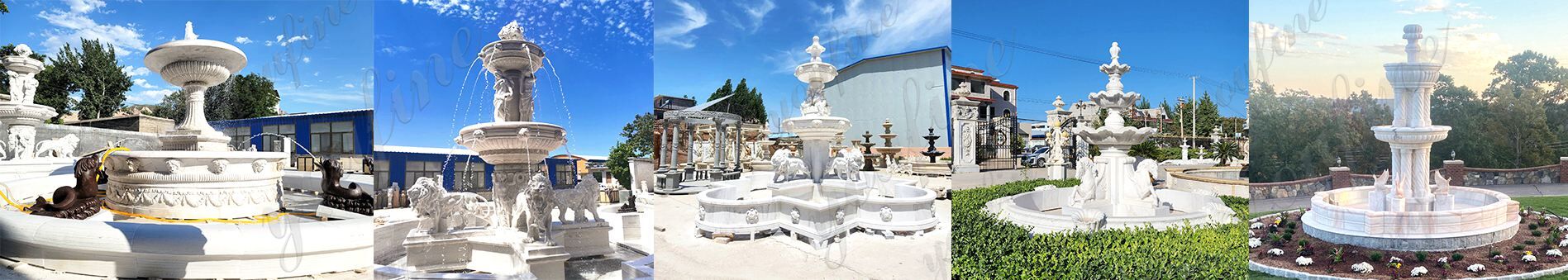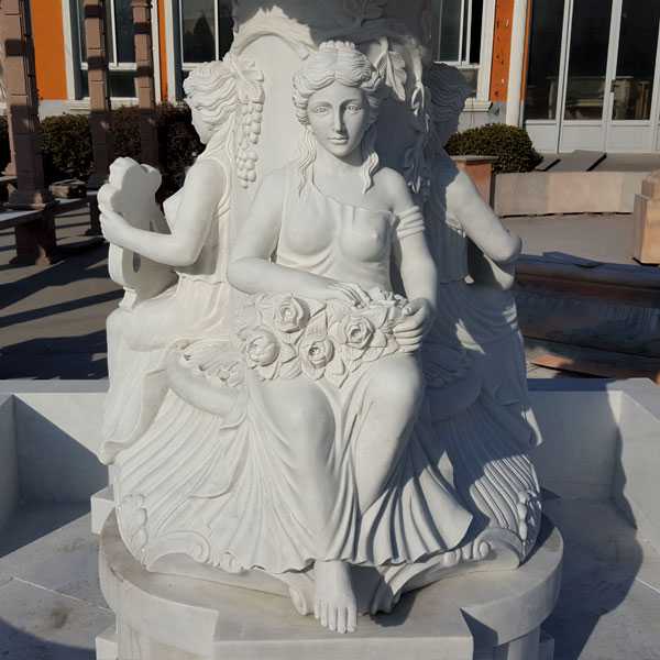 Large outdoor pure white tiered water horse fountains with sitting woman statue for yard decor–MOKK-02