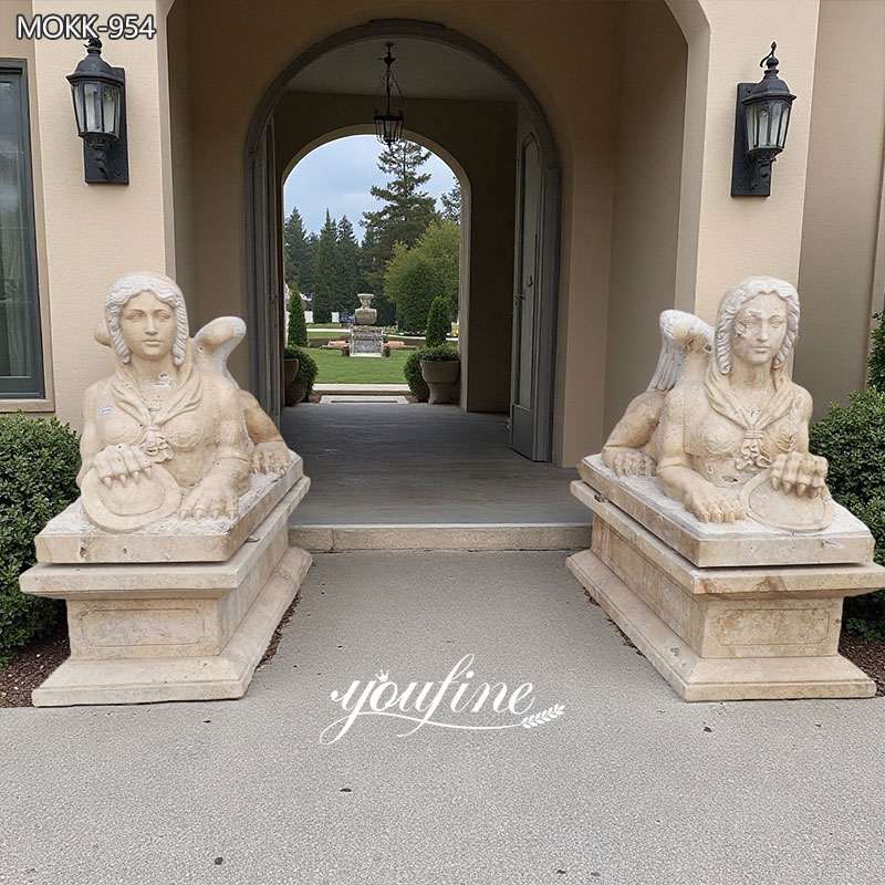 Antique Large Yellow Marble Sphinx Statues for European Supplier MOKK-595