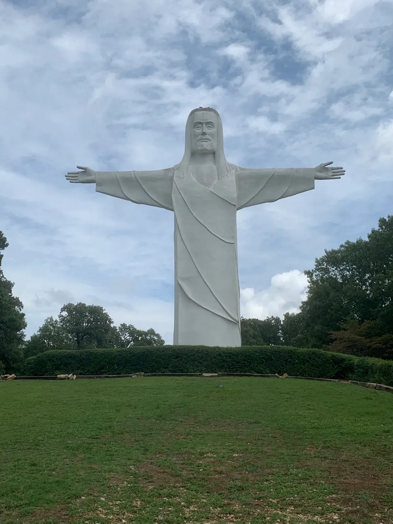 Completed in 1966, the Christ of the Ozarks statue stands 67 feet tall. Located on Magnetic Mountain, it symbolizes peace and welcoming, offering stunning views of the Ozark Mountains.