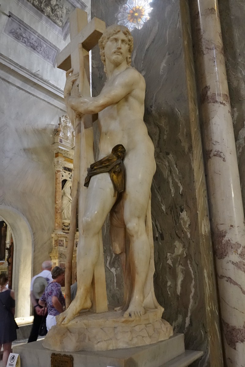 This marble statue, created by Michelangelo in the early 16th century, represents the resurrected Christ holding the cross. It is housed in the Church of Santa Maria sopra Minerva in Rome.